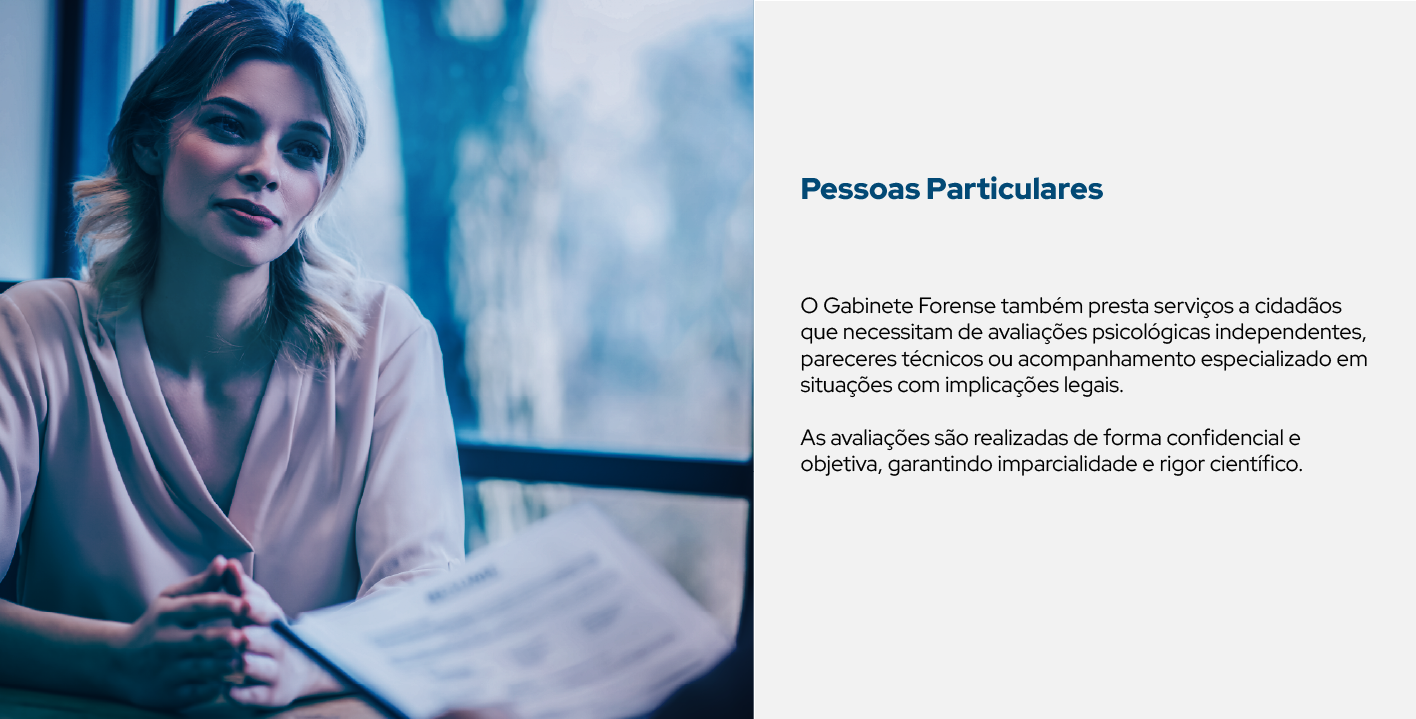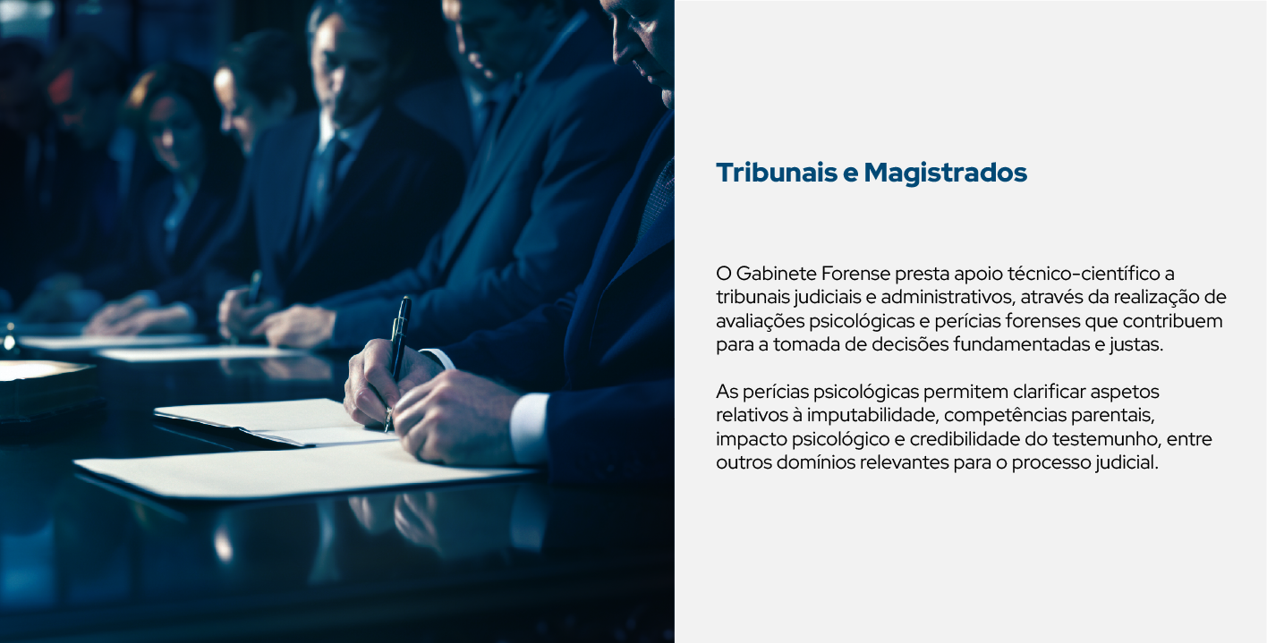 A atuação do gabinete pauta-se pela independência técnica, pelo rigor científico e pelo compromisso ético, oferecendo apoio especializado e consultoria psicológica forense adaptada às necessidades de cada destinatário.